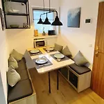 Complete with a storage space, a terrace, and a seating area, Appartement Aussen Pfui - Innen Hui is appointed with a sofa set, and contemporary amenities such as a multi-channel TV. A bathroom comes with a separate toilet and a shower, along with a hair dryer and towels.